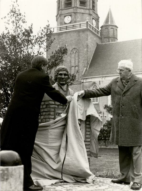 Onthulling borstbeeld Eise Eisinga aan de Tsjerkebuorren op 20 maart 1982 door