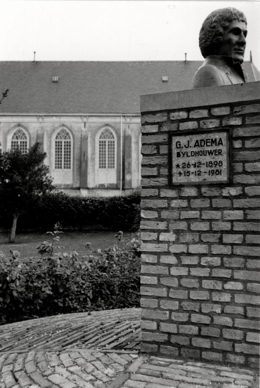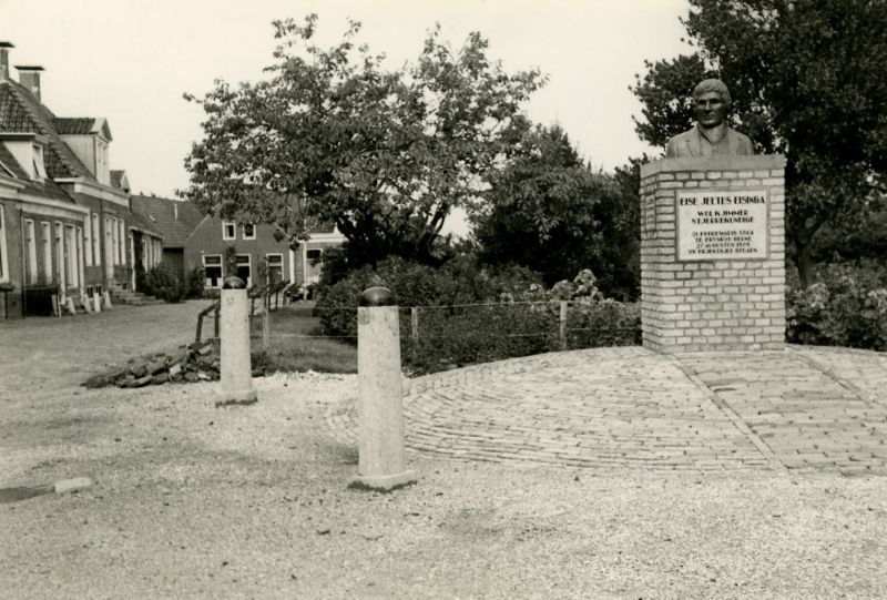 Beeld Eise Eisinga Tsjerkebuorren 1982. Buste t.o. geboortehuis op nr. 13